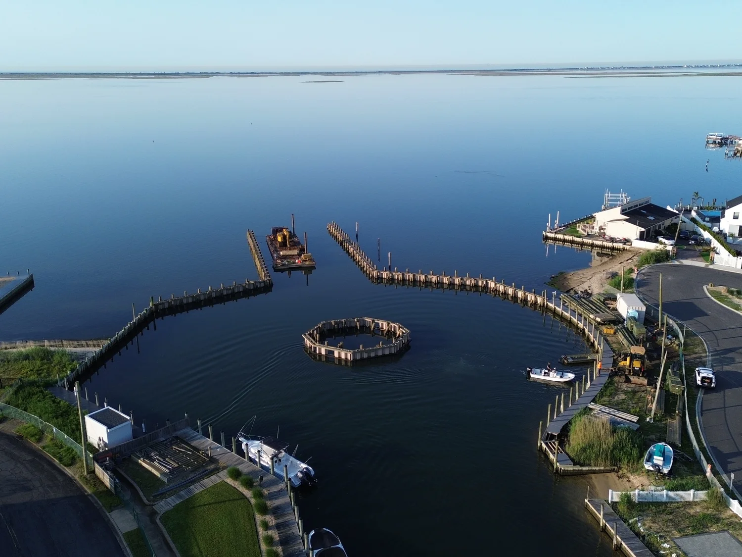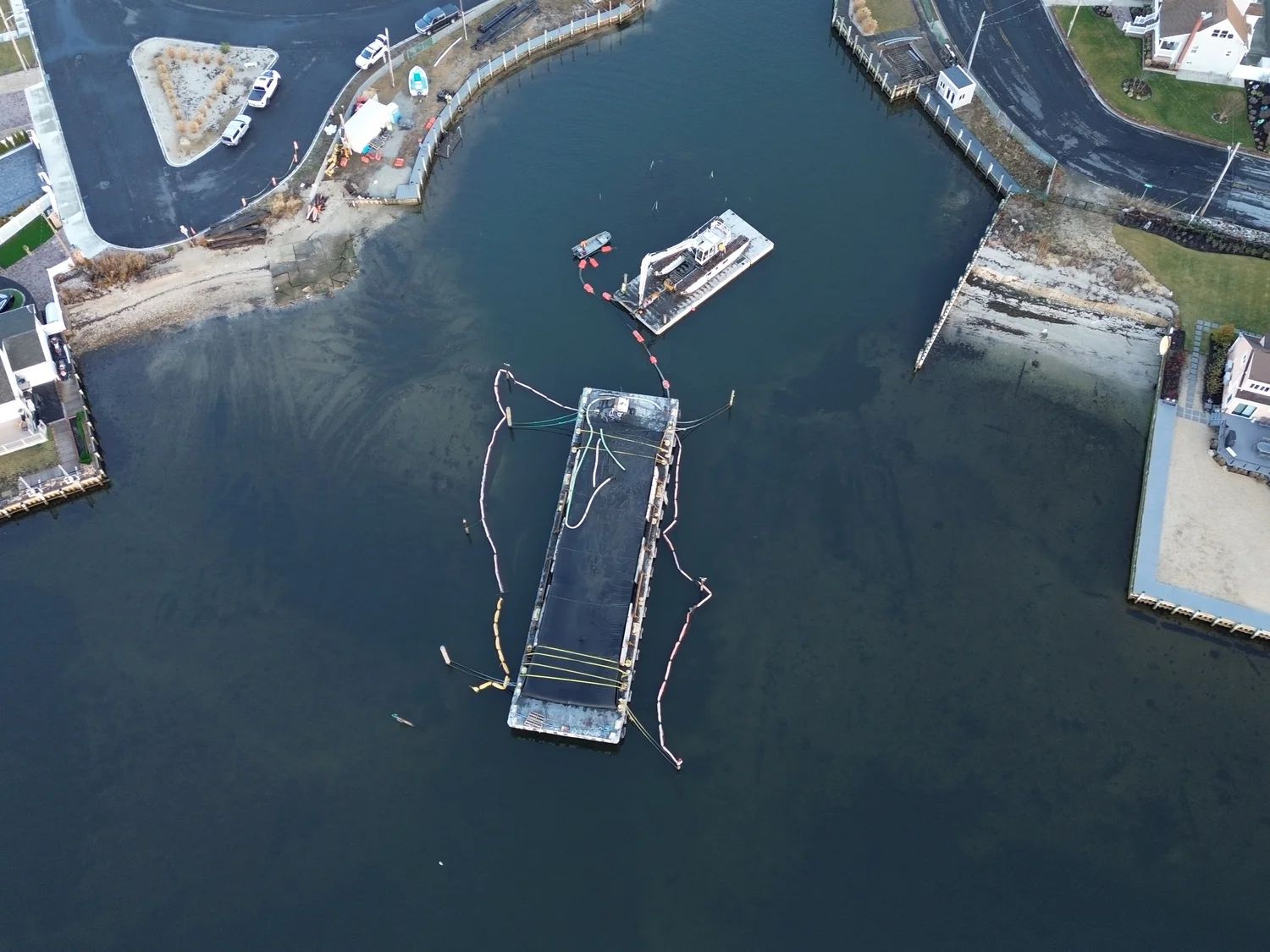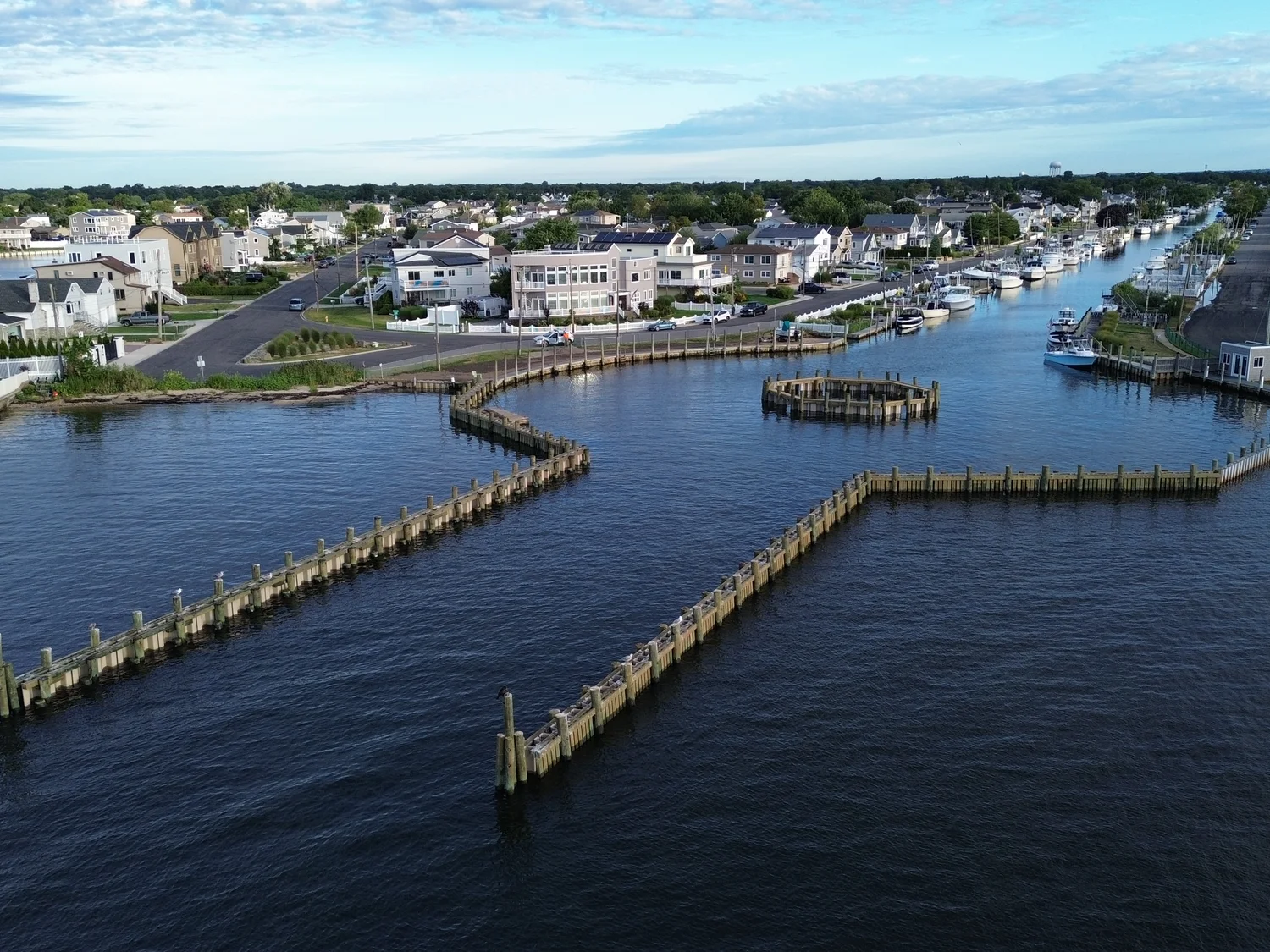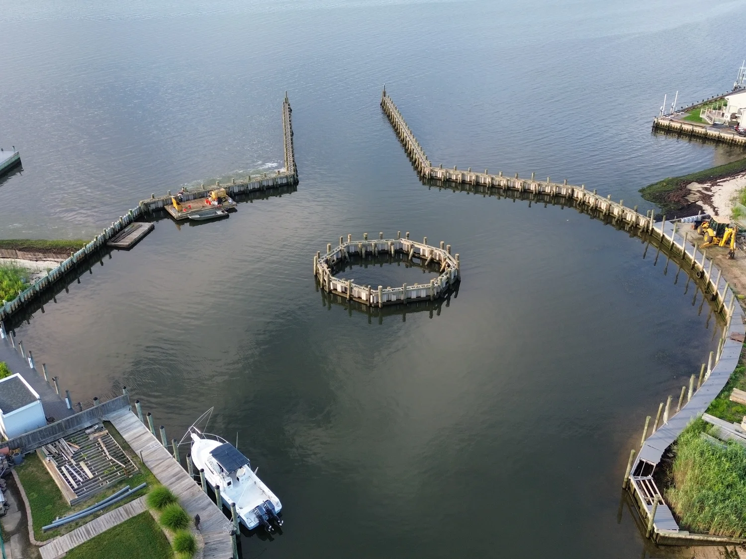 The scope of work included the removal of over 1,000 cubic yards of dredged material to improve navigable depths for local boaters and emergency access. A new sheet pile and heavy timber breakwater system was installed to replace the deteriorated bulkhead, providing long-term protection from erosion and wave action.